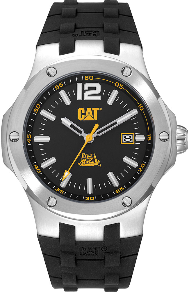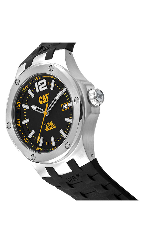 Ανδρικό ρολόι Caterpillar από ανοξείδωτο ατσάλι με μαύρο καντράν και μαύρο καουτσούκ λουράκι.