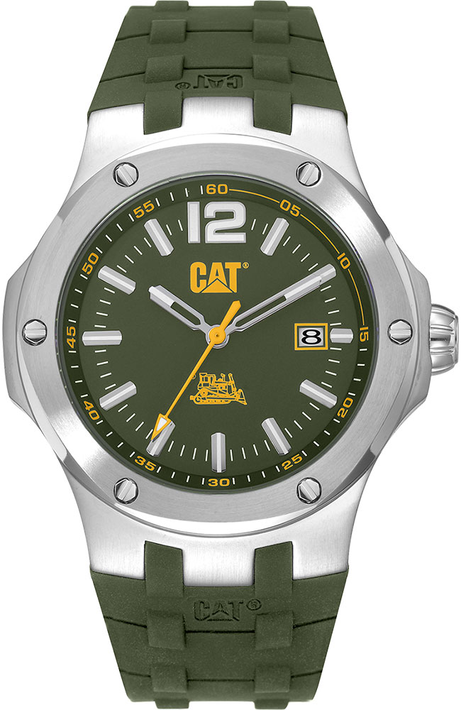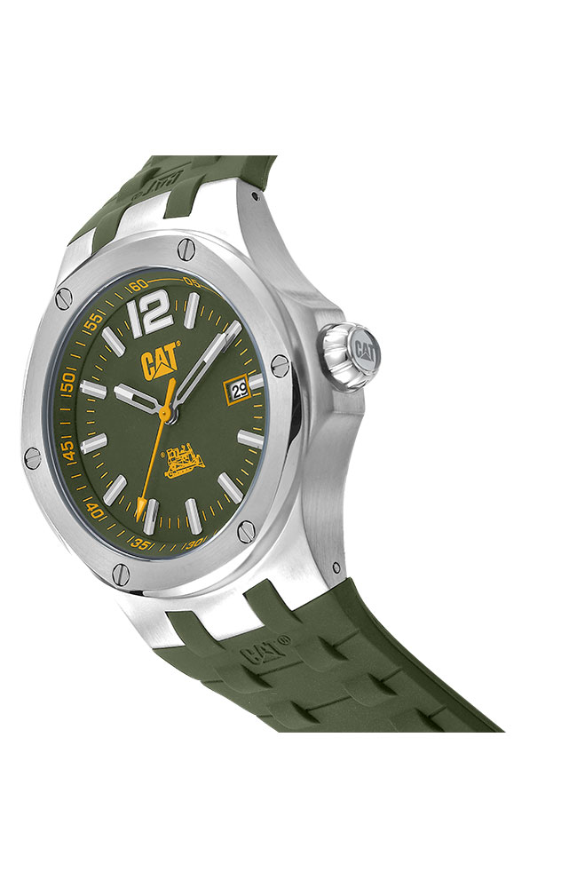 Ανδρικό ρολόι Caterpillar από ανοξείδωτο ατσάλι με πράσινο καντράν και πράσινο καουτσούκ λουράκι.