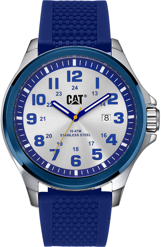 Ανδρικό ρολόι Caterpillar από ανοξείδωτο ατσάλι με ασημί καντράν και καουτσούκ λουράκι.