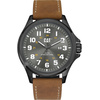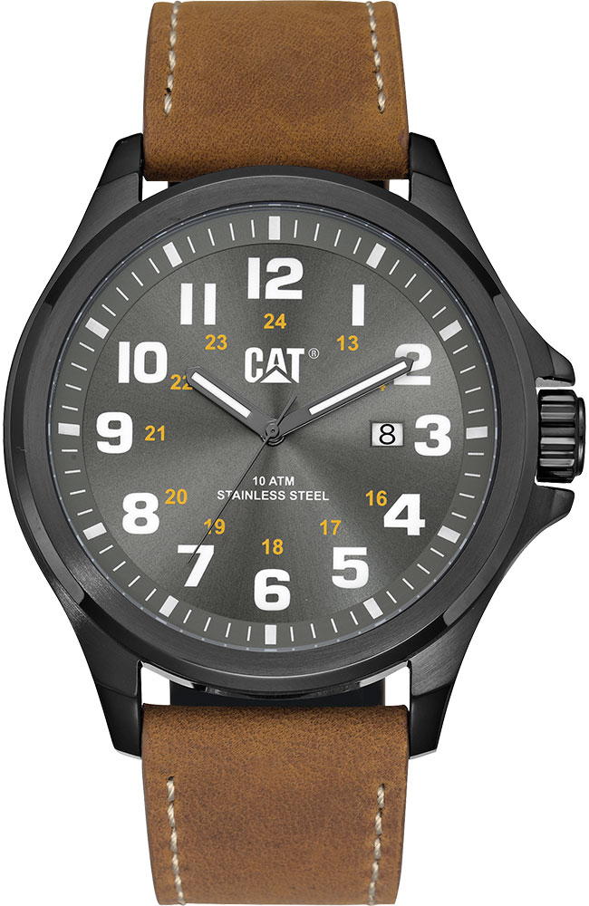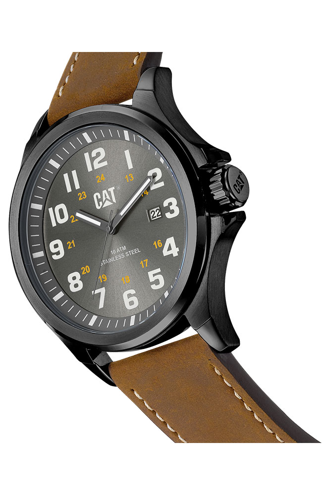 Ανδρικό ρολόι Caterpillar από ανοξείδωτο ατσάλι με ανθρακί καντράν και δερμάτινο λουράκι.