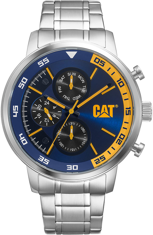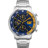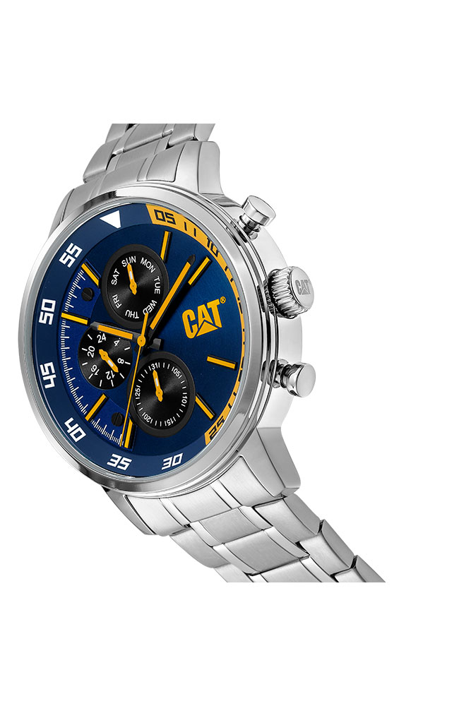 Ανδρικό ρολόι Caterpillar από ανοξείδωτο ατσάλι με μπλε καντράν και ασημί μπρασελέ.