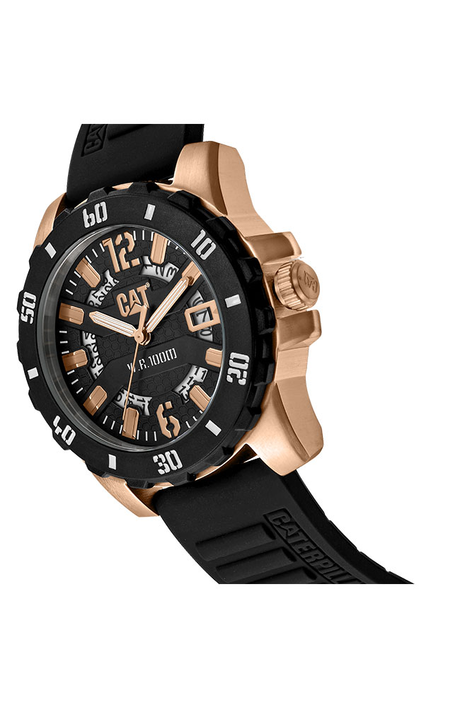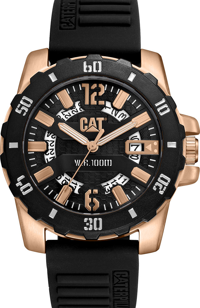 Ανδρικό ρολόι Caterpillar από ανοξείδωτο ατσάλι με μαύρο καντράν και καουτσούκ λουράκι.