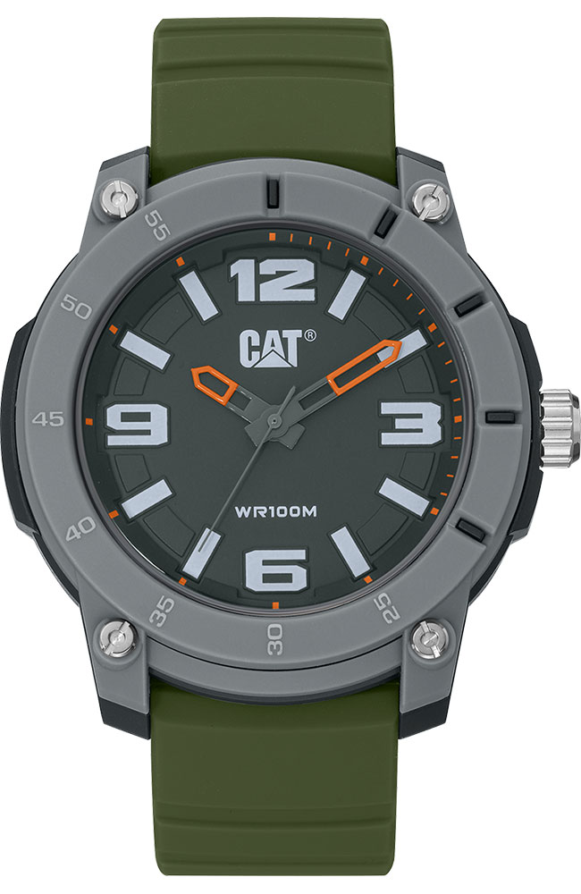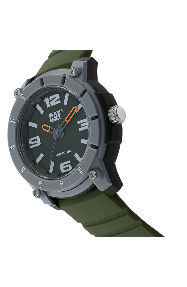 Ανδρικό ρολόι Caterpillar με γκρι καντράν και πράσινο καουτσούκ λουράκι.
