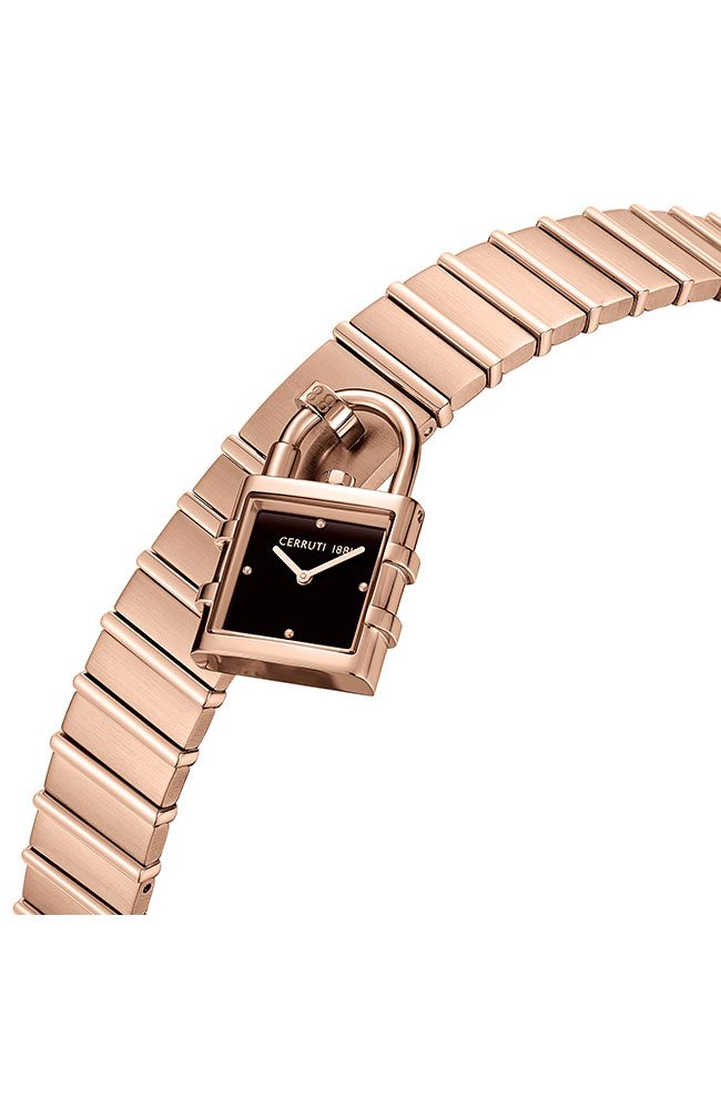 Γυναικείο ρολόι Cerruti από ροζ επιχρυσωμένο ανοξείδωτο ατσάλι με καφέ καντράν και ροζ χρυσό μπρασελέ.