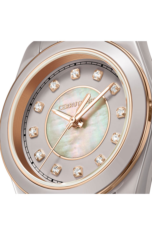 Γυναικείο ρολόι Cerruti από ανοξείδωτο ατσάλι με μπεζ καντράν και μπρασελέ.