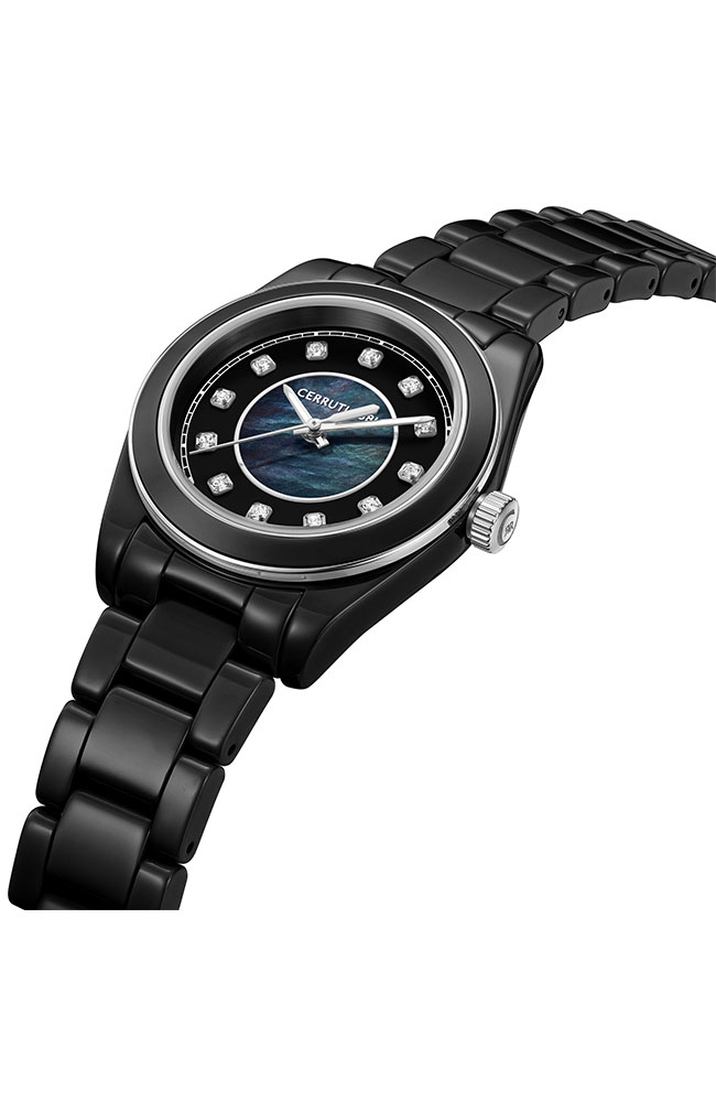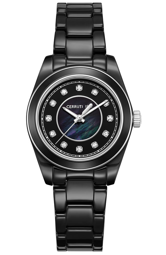Γυναικείο ρολόι Cerruti από ανοξείδωτο ατσάλι με μαύρο καντράν και μπρασελέ.