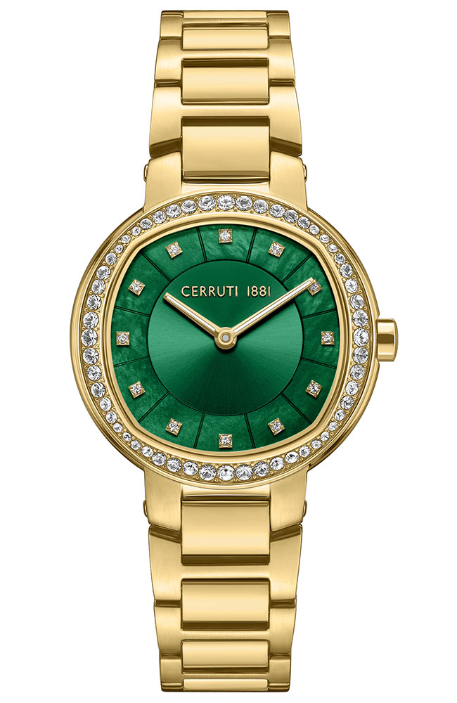 Γυναικείο ρολόι Cerruti από ανοξείδωτο ατσάλι με πράσινο καντράν και μπρασελέ.