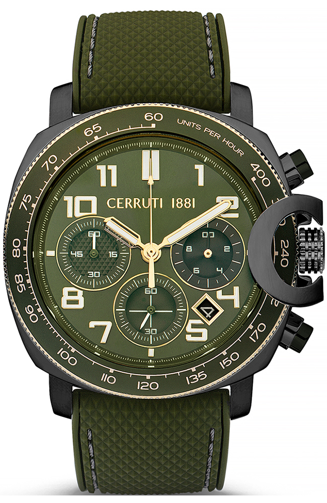 Ανδρικό ρολόι Cerruti από ανοξείδωτο ατσάλι με πράσινο καντράν και καουτσούκ λουράκι.