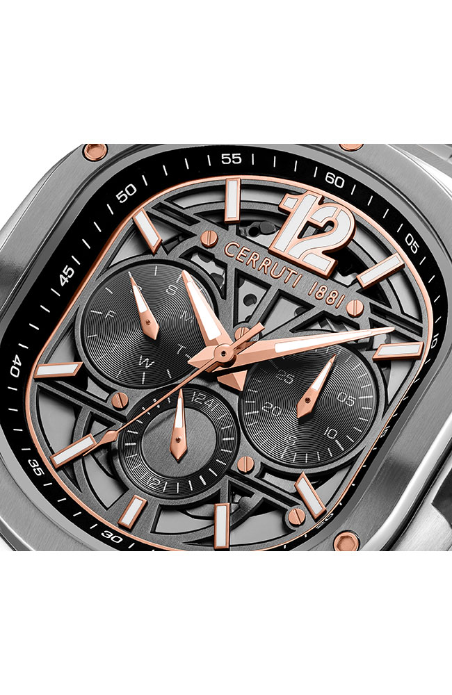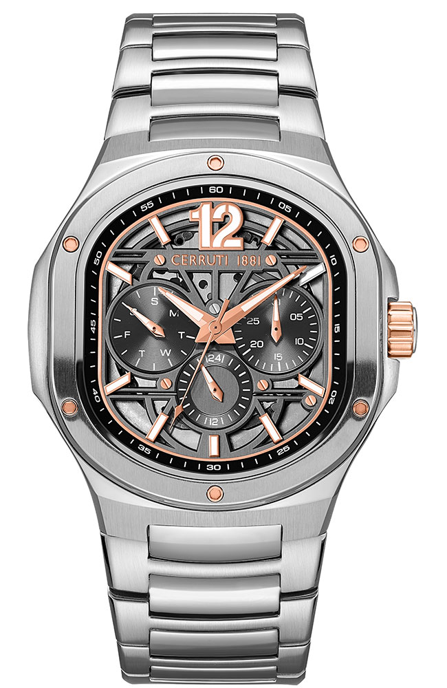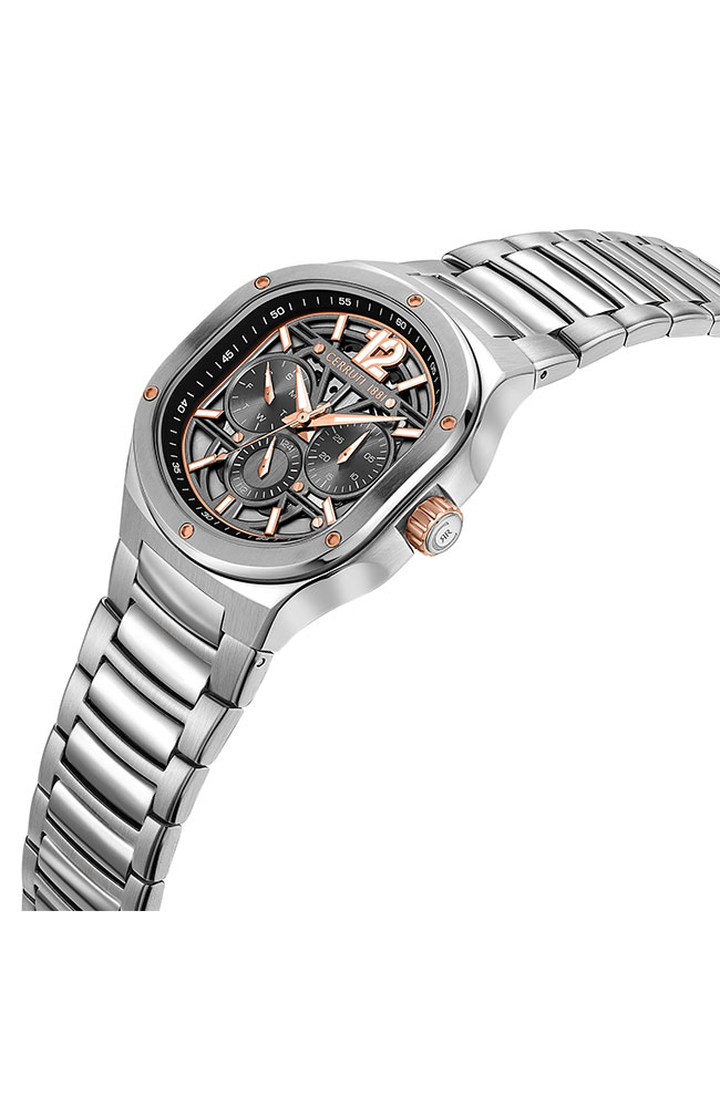 Ανδρικό ρολόι Cerruti από ανοξείδωτο ατσάλι με γκρι καντράν και ασημί μπρασελέ.