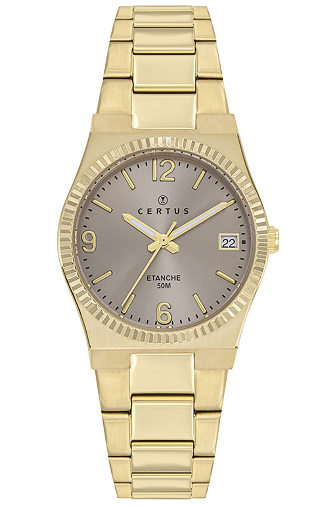 Γυναικείο ρολόι χειρός Certus με καφέ καντράν και χρυσό μπρασελέ.