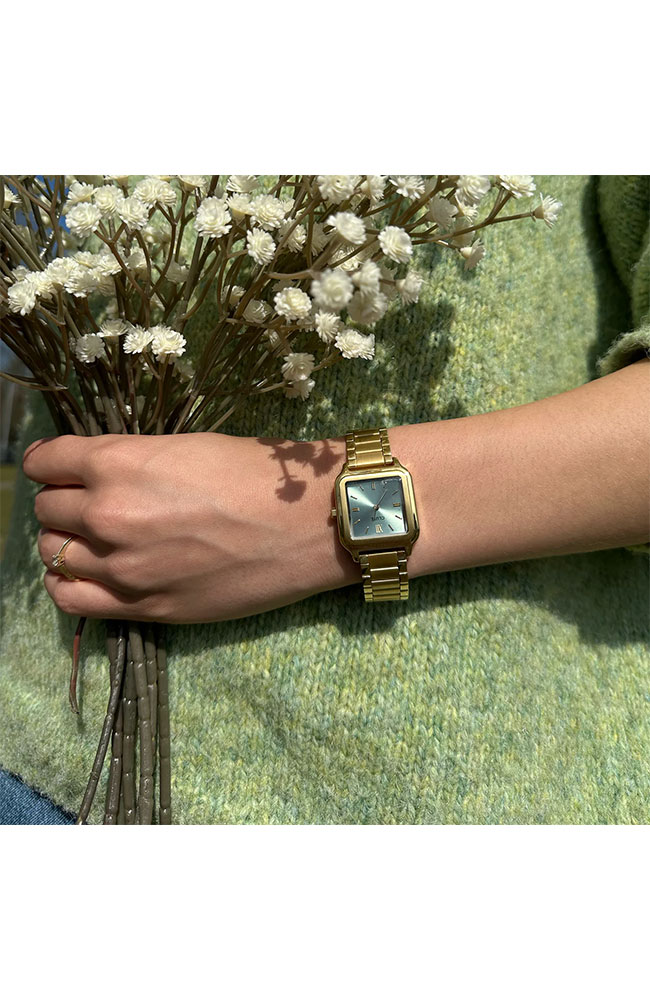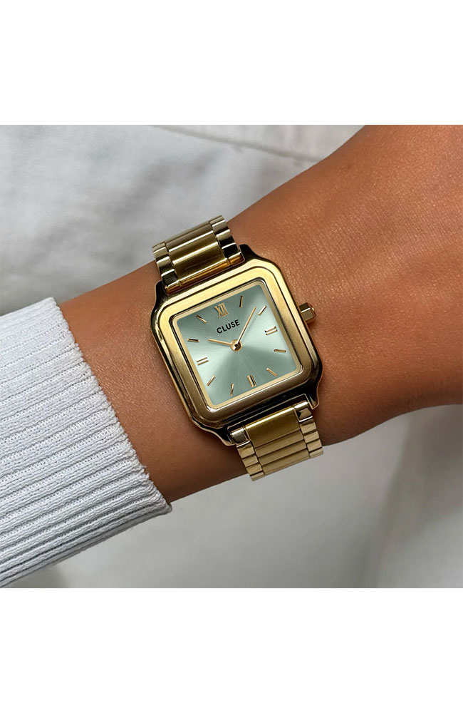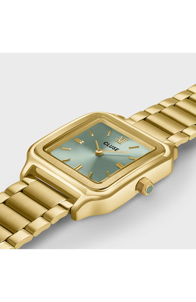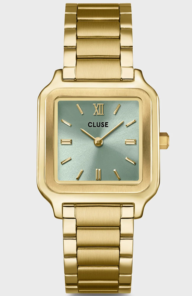 Γυναικείο ρολόι Cluse από επιχρυσωμένο ανοξείδωτο ατσάλι με πράσινο καντράν και χρυσό μπρασελέ.