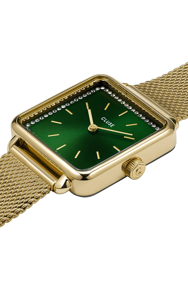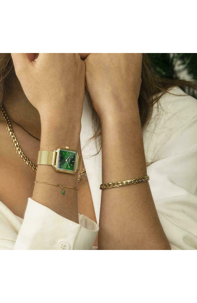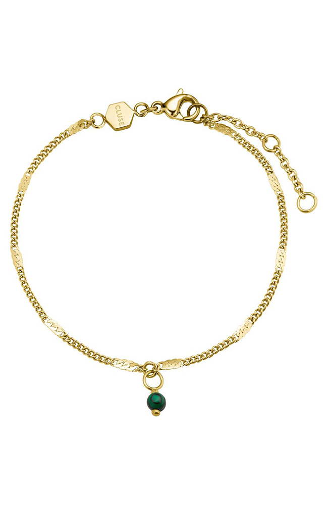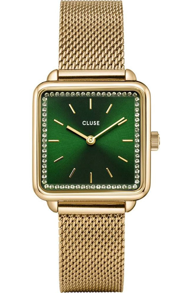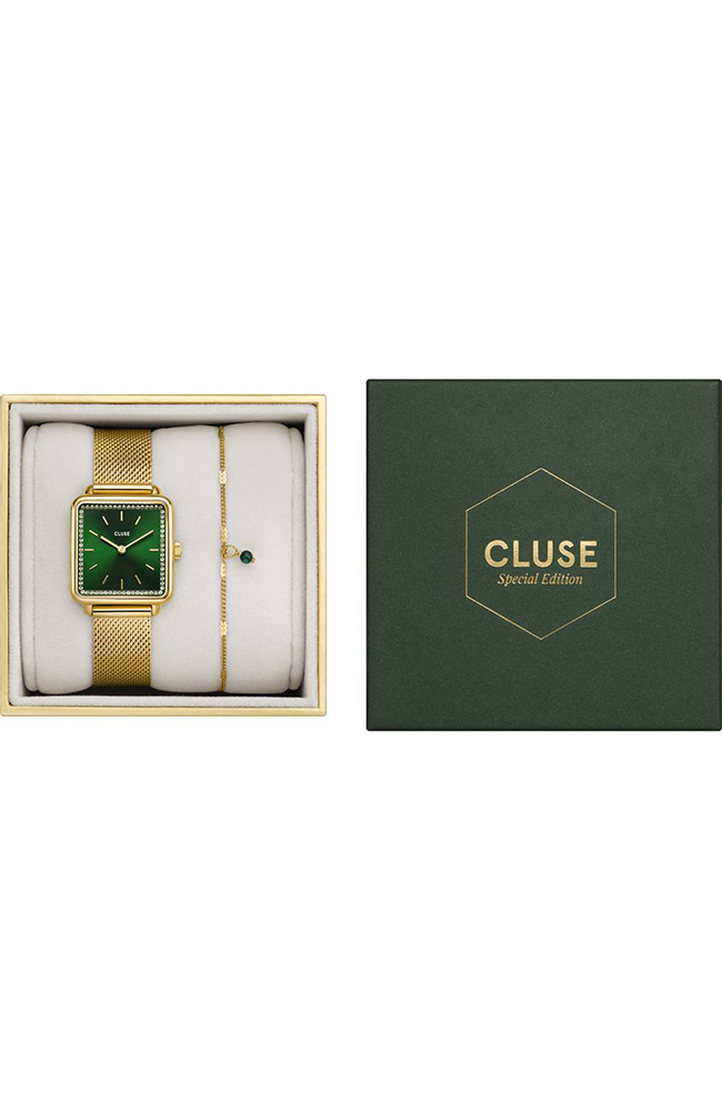 Γυναικείο ρολόι Cluse από ανοξείδωτο ατσάλι με πράσινο καντράν, πέτρες ζιργκόν και μπρασελέ. Συσκευασία που περιλαμβάνει ένα βραχιόλι από ανοξείδωτο ατσάλι.