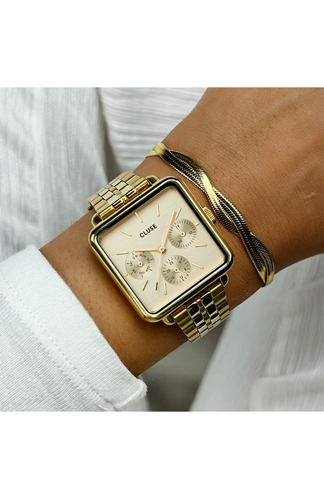 Γυναικείο ρολόι Cluse από ανοξείδωτο ατσάλι με χρυσό καντράν και μπρασελέ.