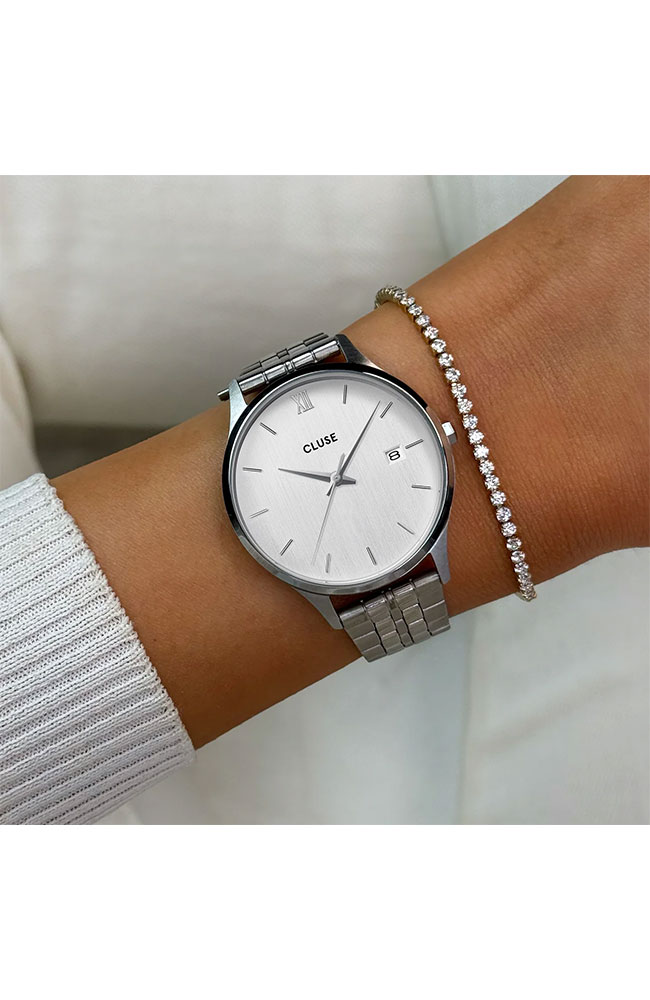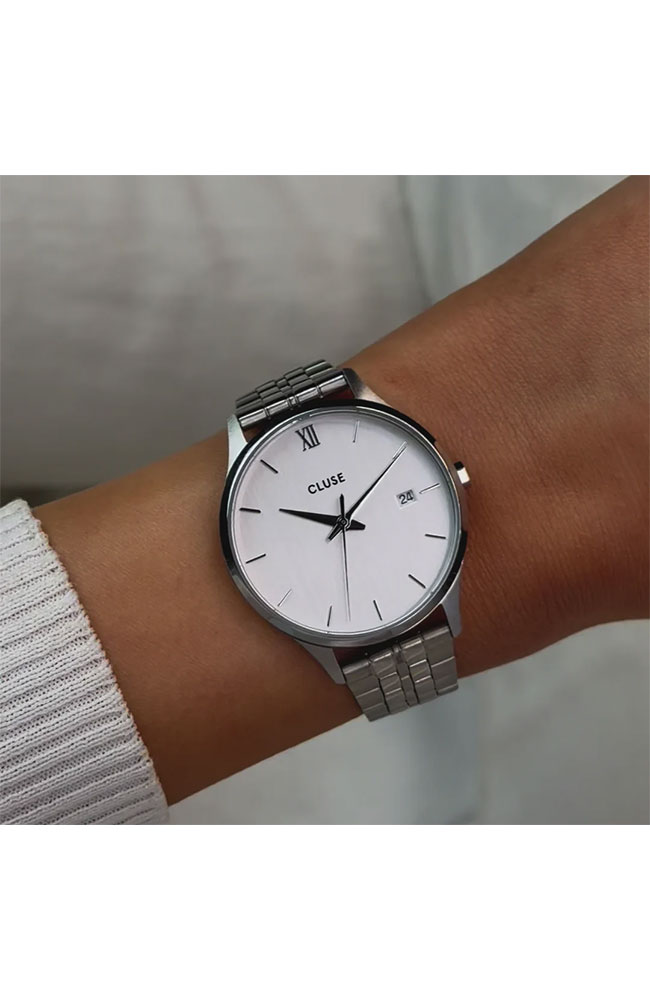Γυναικείο ρολόι Cluse με λευκό καντράν και μπρασελέ.