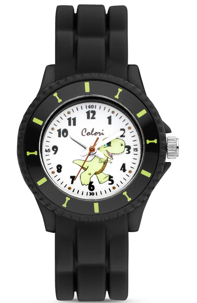 Παιδικό ρολόι Colori με λευκό καντράν και μαύρο καουτσούκ λουράκι.