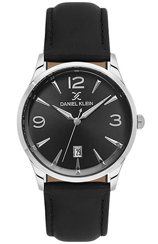 Ανδρικό ρολόι Daniel Klein με μαύρο καντράν και μαύρο δερμάτινο λουράκι.