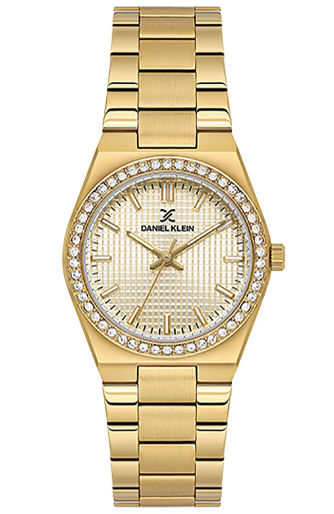 Γυναικείο ρολόι Daniel Klein με χρυσό καντράν, πέτρες Ζιργκόν και χρυσό μπρασελέ.