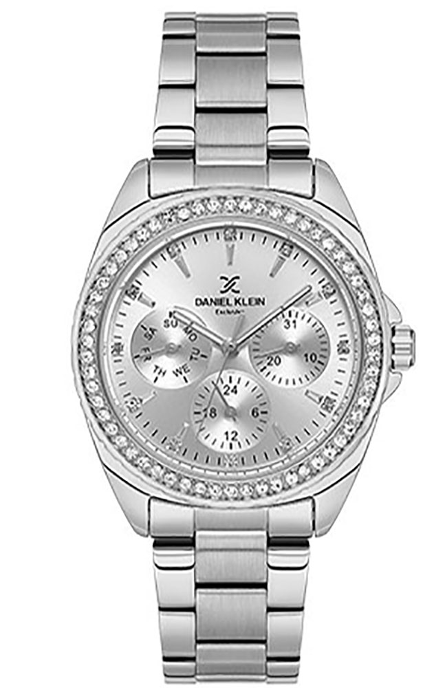 Γυναικείο ρολόι Daniel Klein με ασημί καντράν, πέτρες Ζιργκόν και ασημί μπρασελέ.