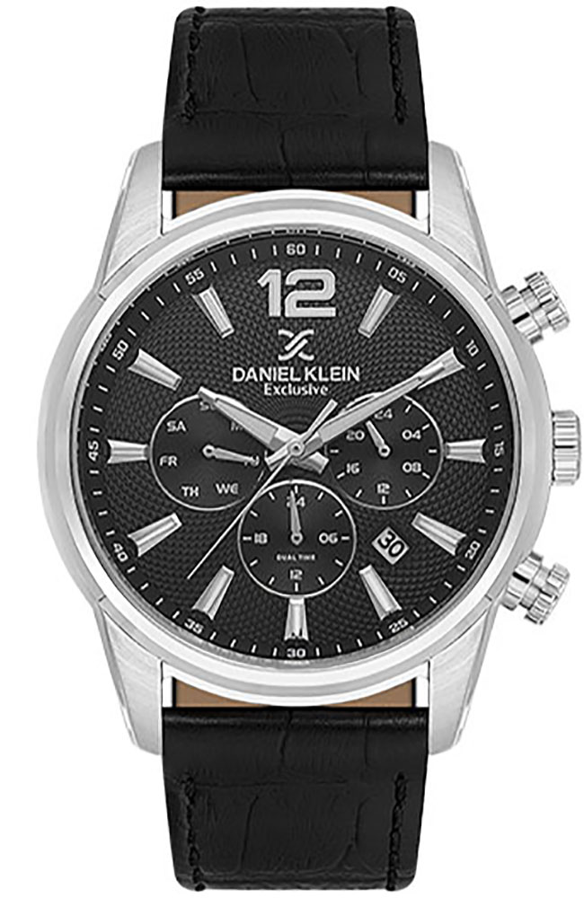 Ανδρικό ρολόι Daniel Klein με μαύρο καντράν και μαύρο δερμάτινο λουράκι.