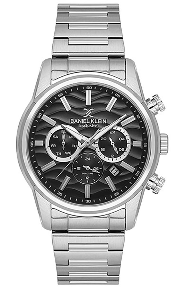Ανδρικό ρολόι Daniel Klein με μαύρο καντράν και ασημί μπρασελέ.