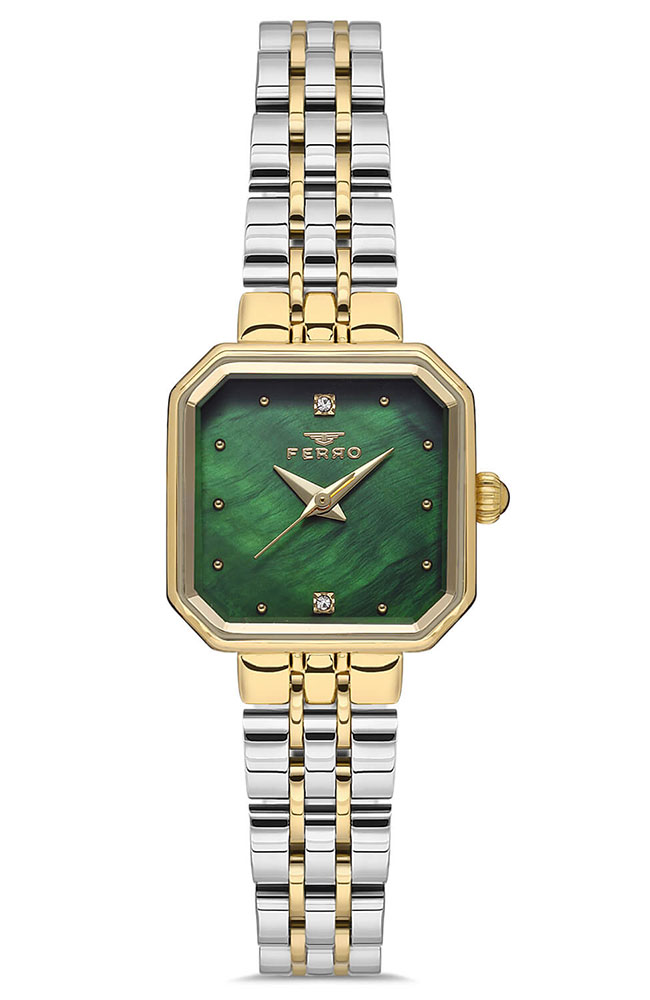 Γυναικείο ρολόι Ferro με πράσινο καντράν και μπρασελέ.