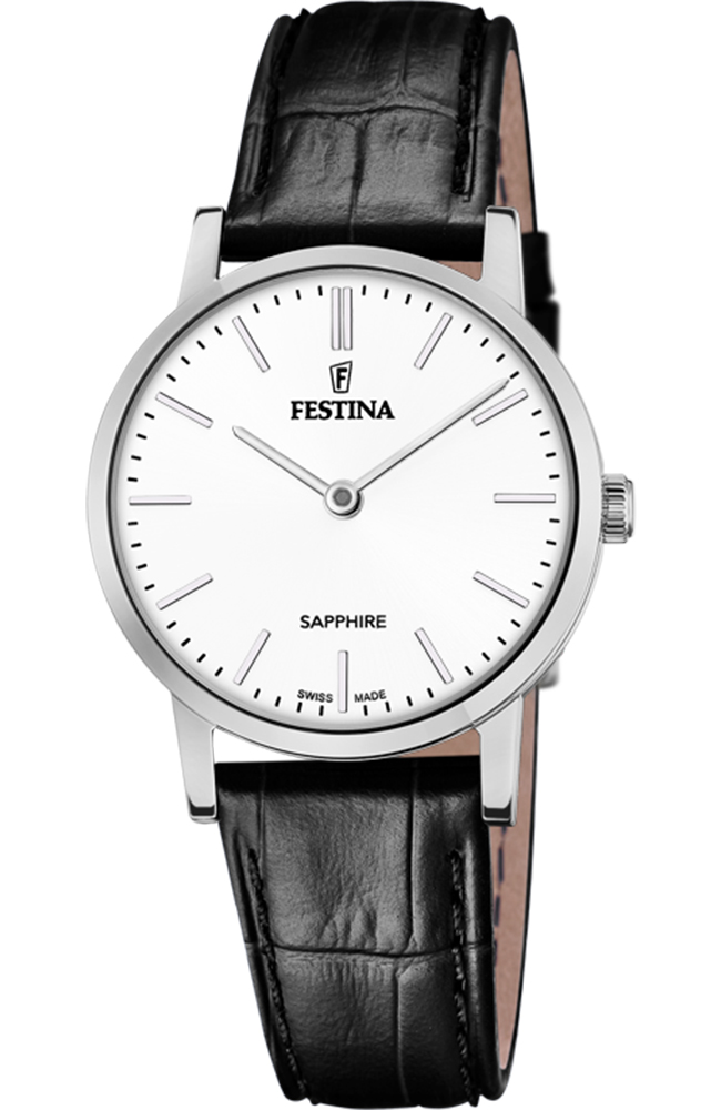 Γυναικείο ρολόι Festina από ανοξείδωτο ατσάλι με λευκό καντράν και δερμάτινο λουράκι.