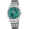 Γυναικείο ρολόι Festina από ανοξείδωτο ατσάλι με πράσινο καντράν, πέτρες ζιργκόν και μπρασελέ.