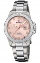 Γυναικείο ρολόι Festina από ανοξείδωτο ατσάλι με μπλε καντράν, πέτρες Ζιργκόν και ασημί μπρασελέ.