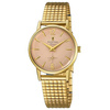 Γυναικείο ρολόι Festina από επιχρυσωμένο ανοξείδωτο ατσάλι με ροζ καντράν και χρυσό μπρασελέ.