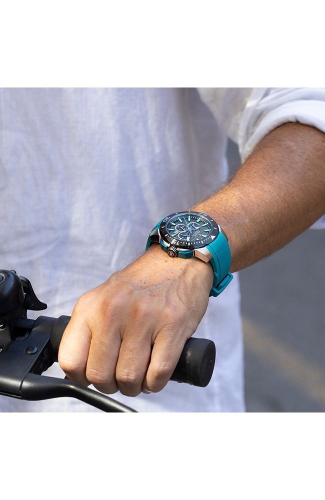 Ανδρικό ρολόι Festina από ανοξείδωτο ατσάλι με μαύρο καντράν και καουτσούκ λουράκι.