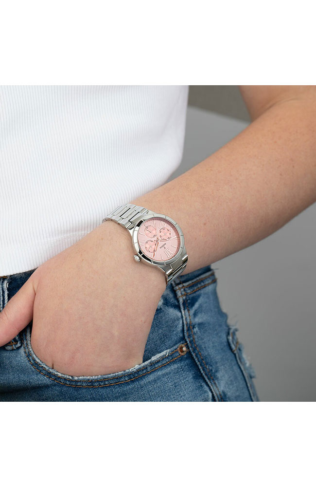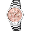 Γυναικείο ρολόι Festina από ανοξείδωτο ατσάλι με ροζ καντράν και ασημί μπρασελέ.