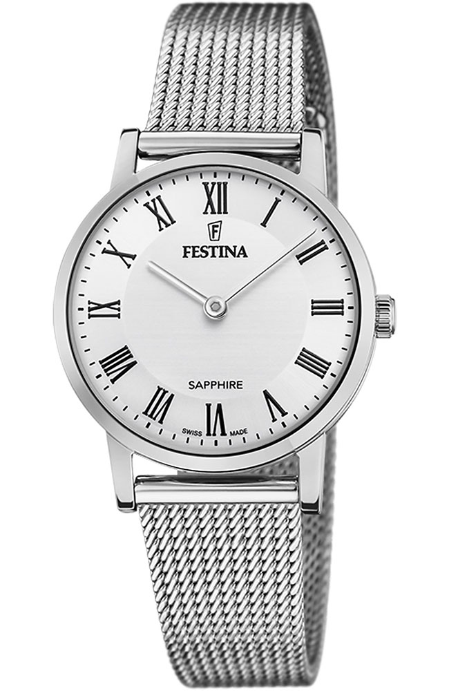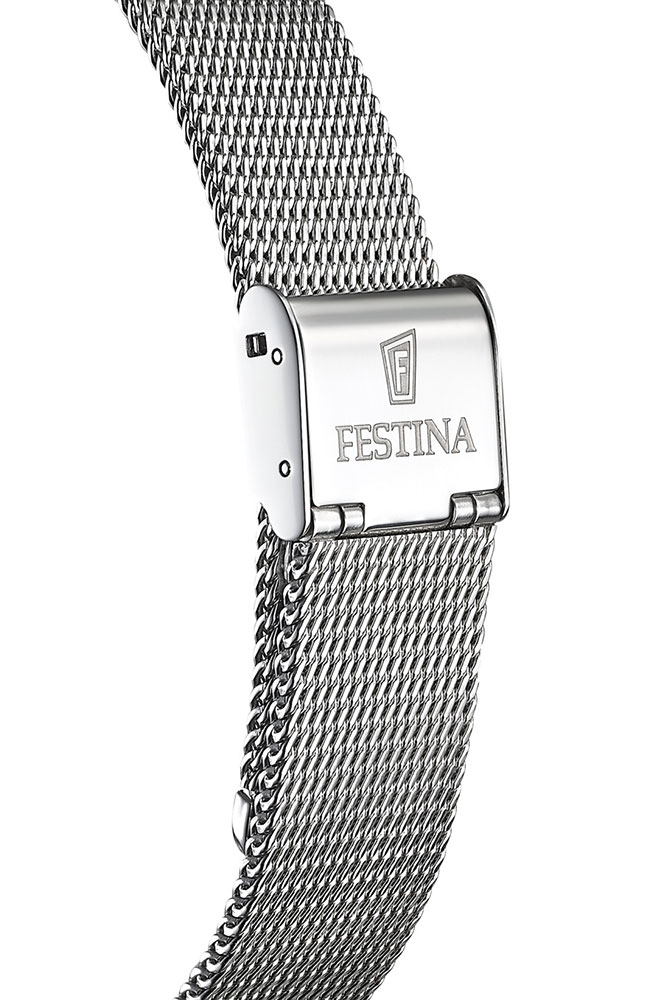 Γυναικείο ρολόι Festina με ελβετικό μηχανισμό από ανοξείδωτο ατσάλι με ασημί καντράν και ασημί μπρασελέ.
