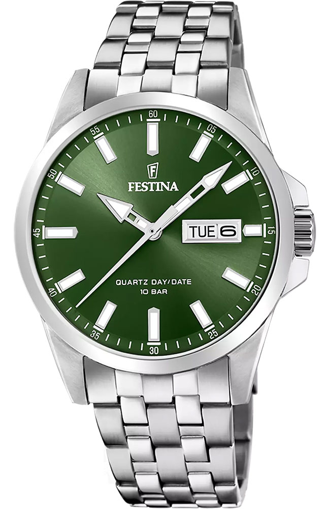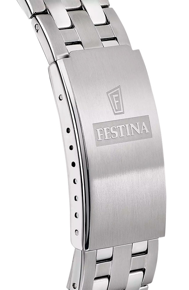 Ανδρικό ρολόι Festina από ανοξείδωτο ατσάλι με μπλε καντράν και μπρασελέ.