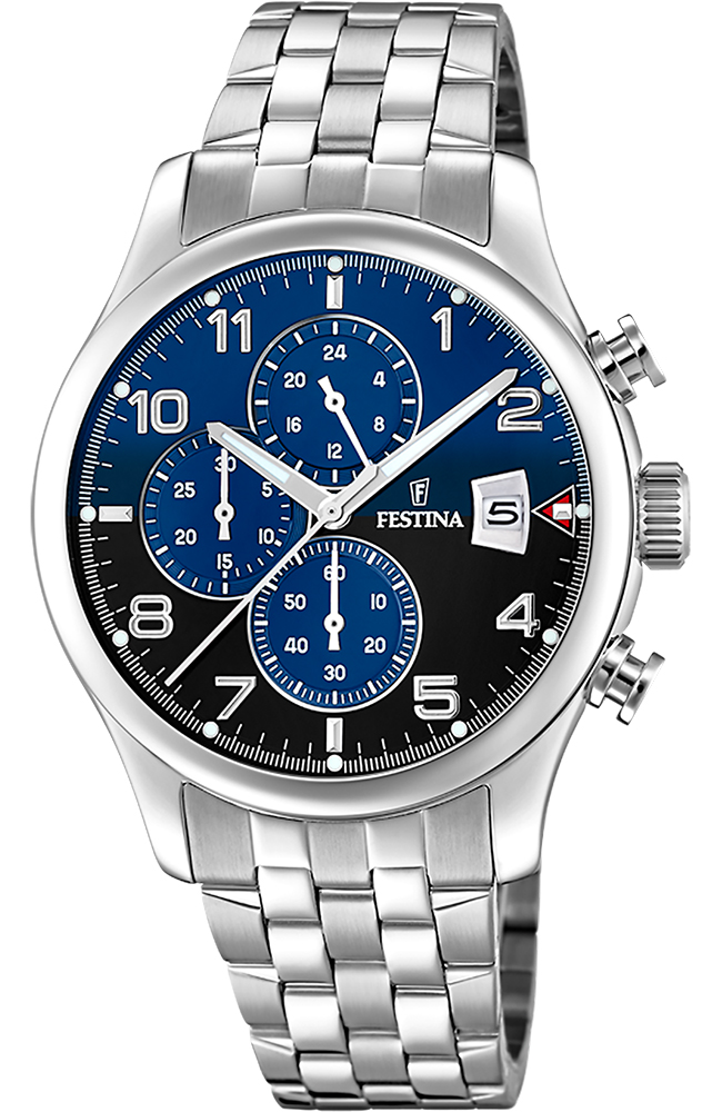 Ανδρικό ρολόι Χρονογράφος Festina από ανοξείδωτο ατσάλι με δίχρωμο καντράν και μπρασελέ.