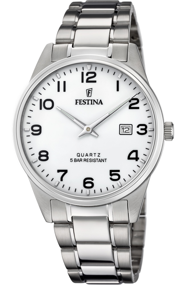 Ανδρικό ρολόι Festina από ανοξείδωτο ατσάλι με λευκό καντράν και μπρασελέ.