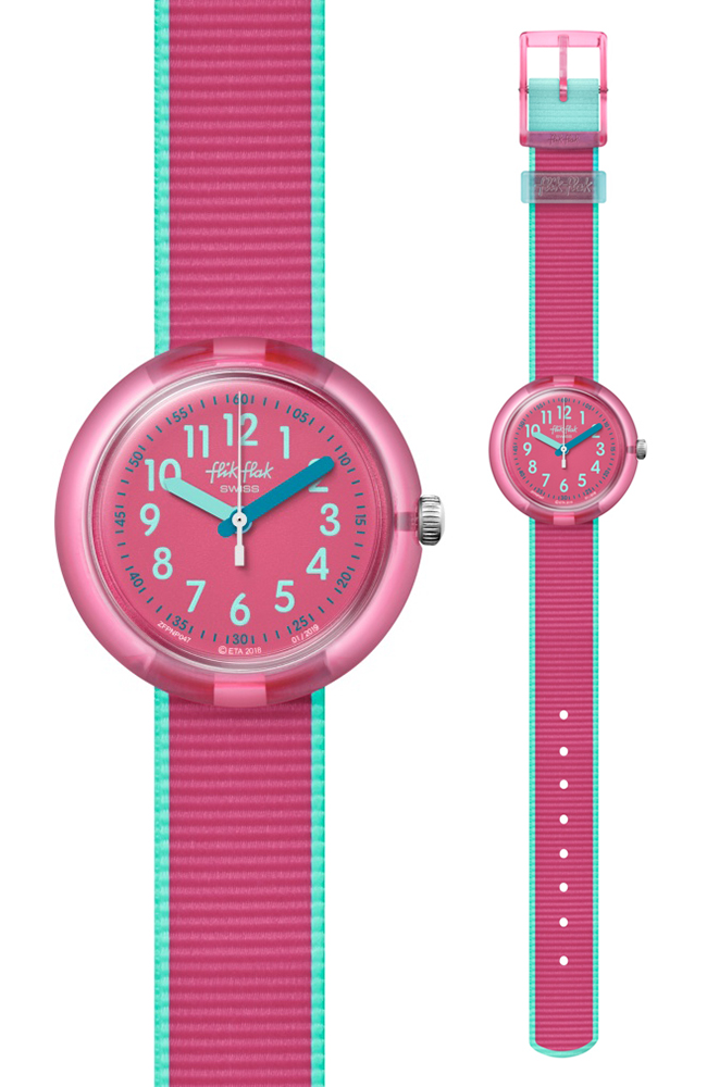 Παιδικό ρολόι Flik Flak με ροζ καντράν και ροζ υφασμάτινο λουράκι.