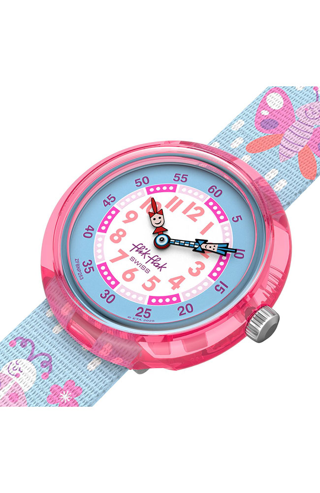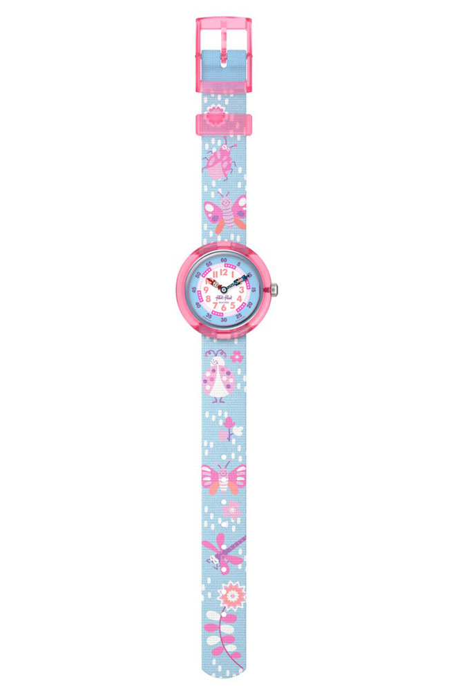Παιδικό ρολόι Flik Flak με λευκό καντράν και υφασμάτινο λουράκι.