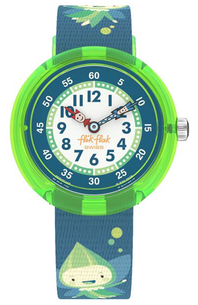 Παιδικό ρολόι Flik Flak με λευκό καντράν και μπλε υφασμάτινο λουράκι.