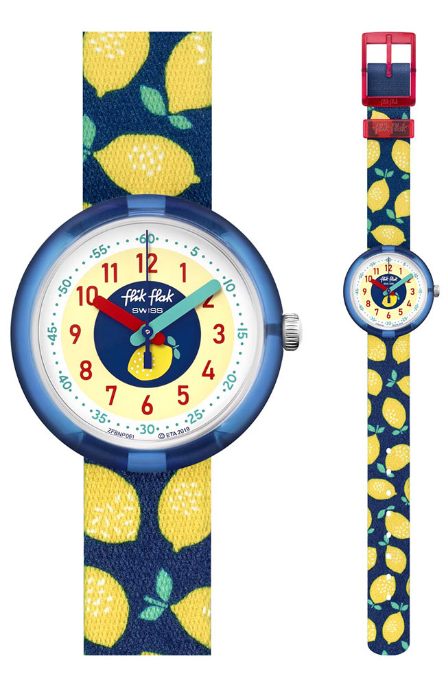 Παιδικό ρολόι Flik Flak με δίχρωμο καντράν και μπλε υφασμάτινο λουράκι.