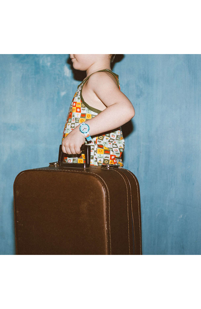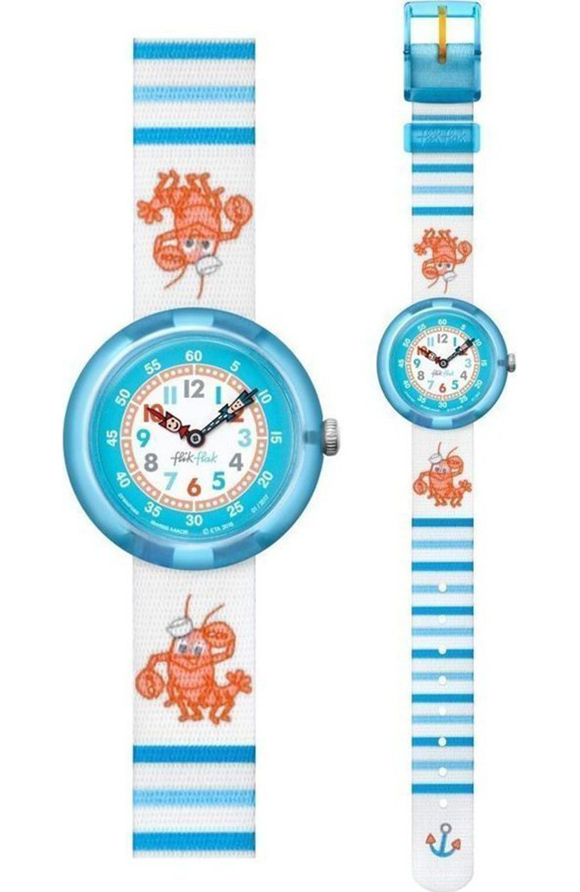 Παιδικό ρολόι Flik Flak με μπλε καντράν και υφασμάτινο λουράκι.