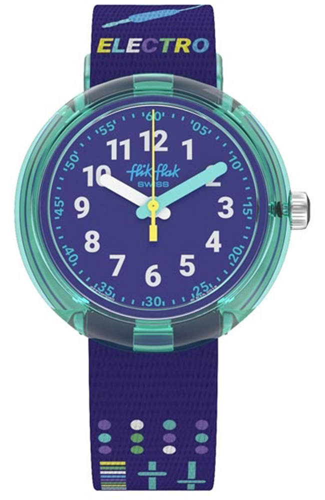 Παιδικό ρολόι Flik Flak με μπλε καντράν και μπλε υφασμάτινο λουράκι.