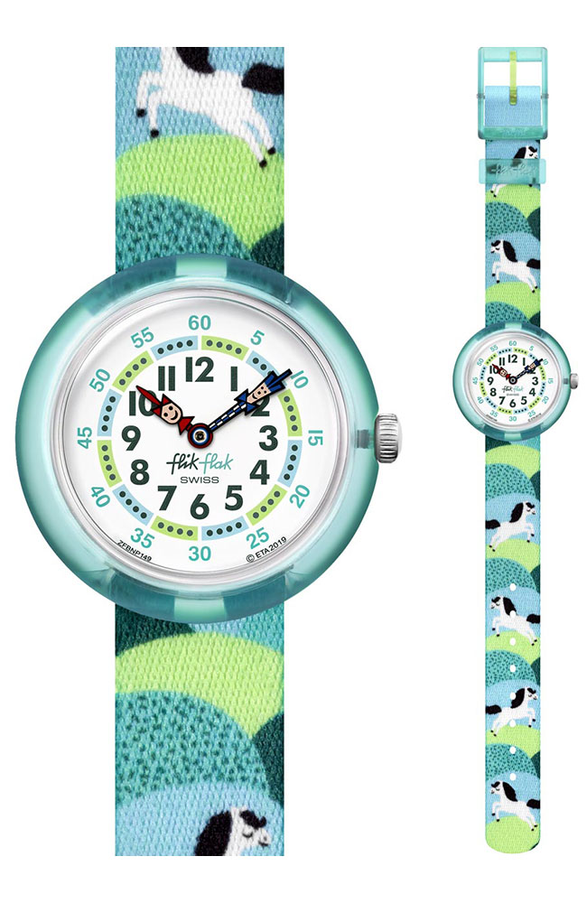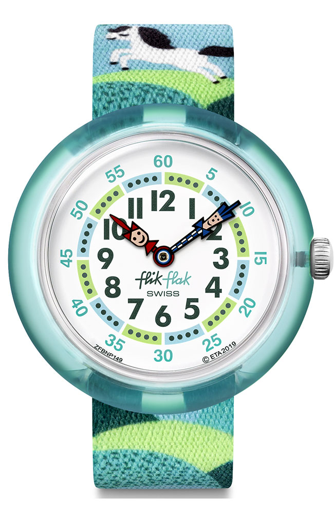 Παιδικό ρολόι Flik Flak με λευκό καντράν και γαλάζιο υφασμάτινο λουράκι.