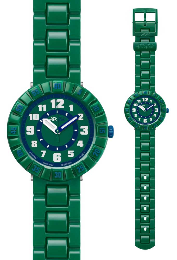 Παιδικό ρολόι Flik Flak με πράσινο καντράν και πράσινο καουτσούκ λουράκι.