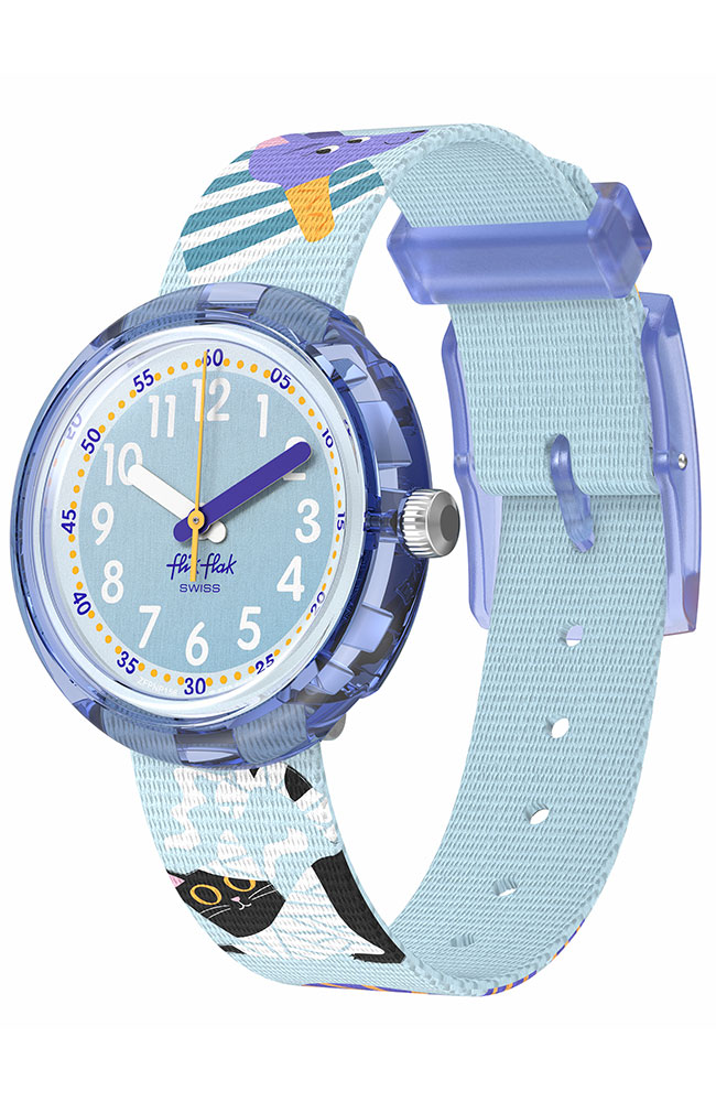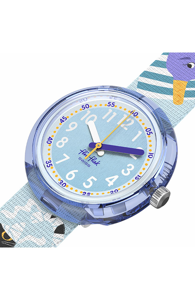 Παιδικό ρολόι Flik Flak με γαλάζιο καντράν και υφασμάτινο λουράκι.