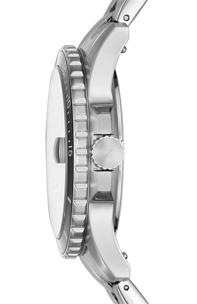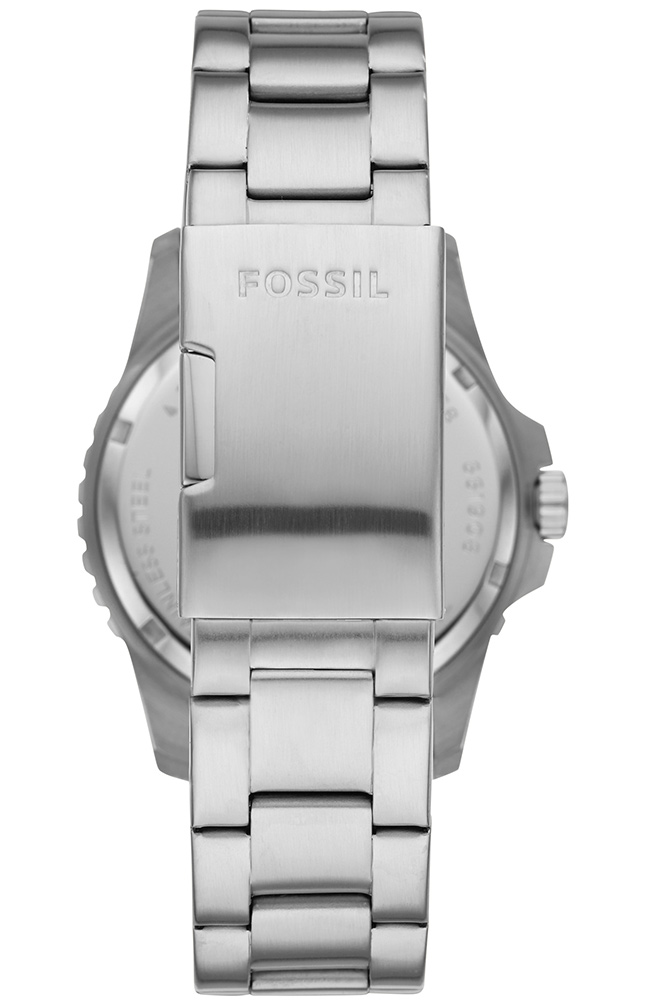 Ανδρικό ρολόι Fossil από ανοξείδωτο ατσάλι με μπλε καντράν και ασημί μπρασελέ.