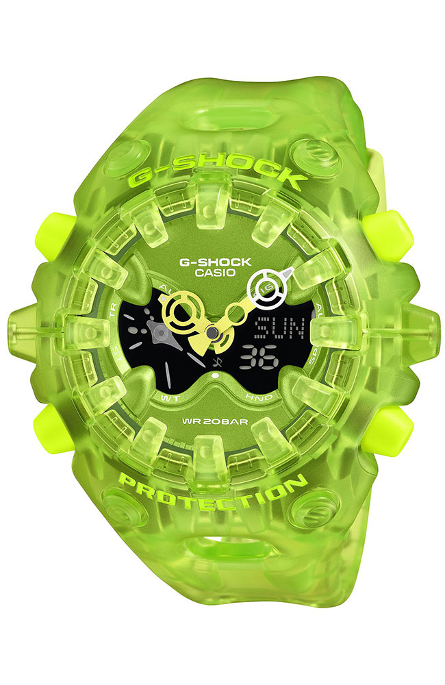 Το GA-V01 συνδυάζει οργανική εξωτερική φόρμα με αιχμηρά σχεδιαστικά στοιχεία, μαζί με μια μεγάλη LCD πλήρους οθόνης, το Shock Release Hand και άλλες καινοτόμες ιδέες που εκφράζουν την ταυτότητα ανθεκτικότητας της G-SHOCK.