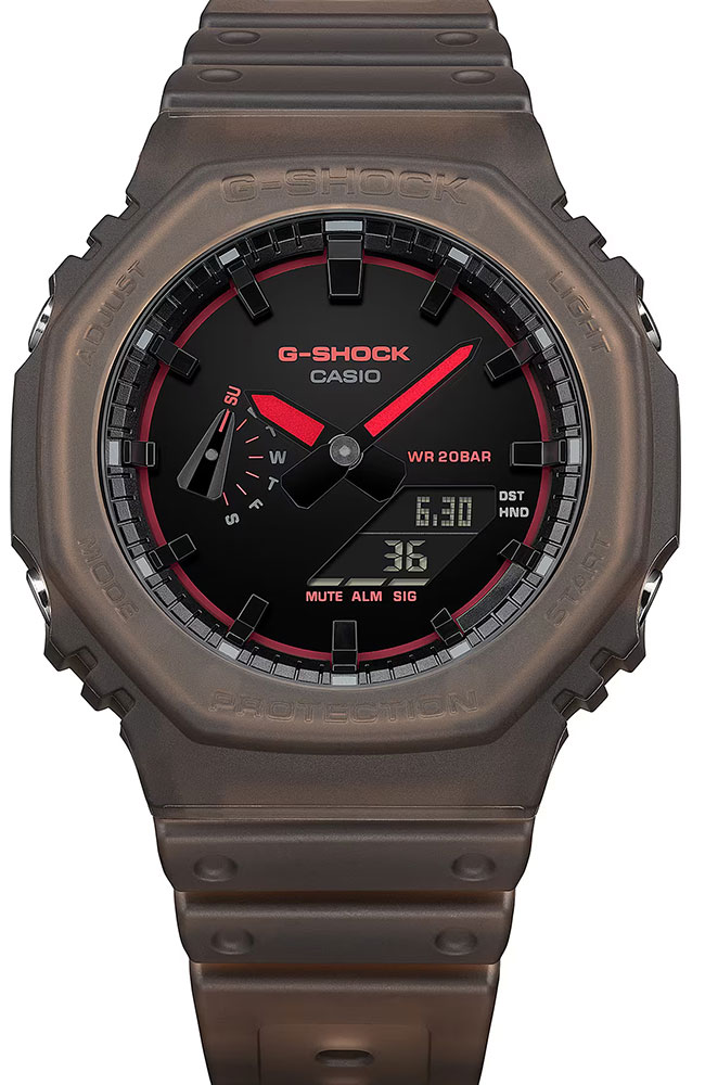Ένα νέο, προηγμένο φινίρισμα επιφάνειας προσδίδει καθαρή και σύγχρονη όψη στο καντράν, αναδεικνύοντας ιδανικά τον λιτό και δυναμικό σχεδιασμό της σειράς GA-2100. Η λεία αυτή επιφάνεια αποτελεί τον τέλειο καμβά για το γυαλιστερό φινίρισμα και την πλούσια χρωματική παλέτα, αποκαλύπτοντας το εντυπωσιακό βάθος του piano black.