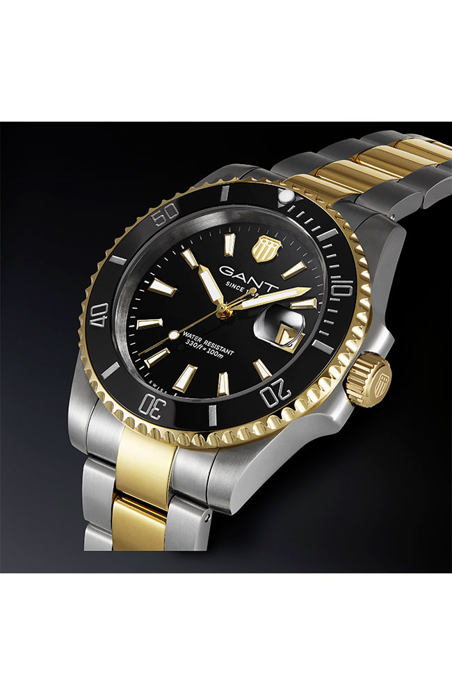 Ανδρικό ρολόι Gant Prestige με ελβετικό μηχανισμό, από ανοξείδωτο ατσάλι με μαύρο καντράν και μπρασελέ.