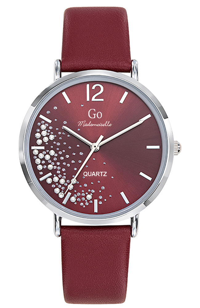 Γυναικείο ρολόι Go Girl με κόκκινο καντράν, πέτρες Ζιργκόν και κόκκινο δερμάτινο λουράκι.