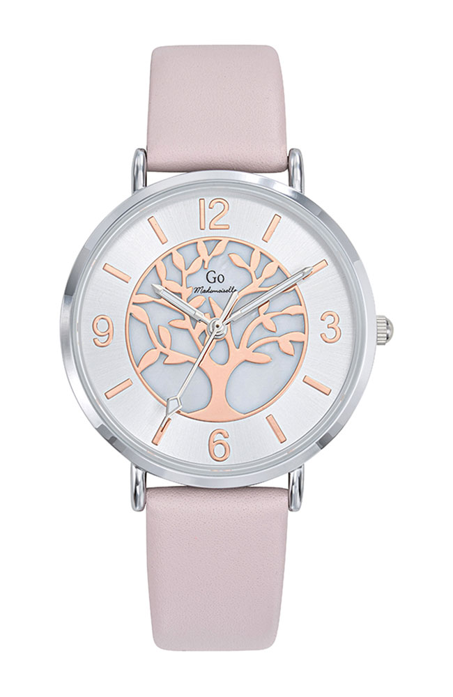 Γυναικείο ρολόι Go Girl με ασημί καντράν και ροζ δερμάτινο λουράκι.
